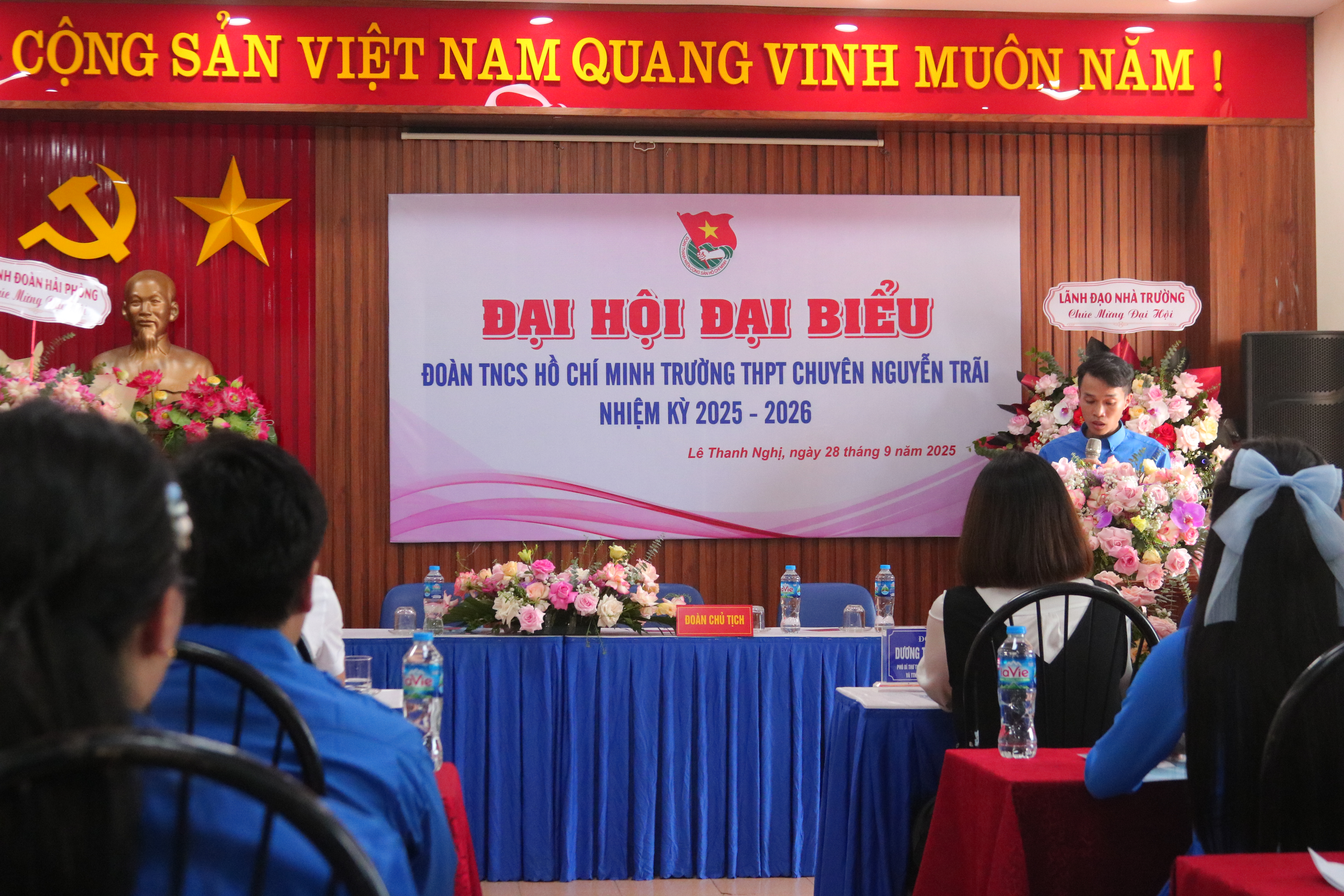 Được sự đồng ý của BCH Thành Đoàn Hải Phòng, Đoàn phường Lê Thanh Nghị và Lãnh đạo trường THPT Chuyên Nguyễn Trãi, chiều 28/09/2025, BCH Đoàn trường THPT Chuyên Nguyễn Trãi long trọng tổ chức Đại hội Đại biểu Đoàn TNCS HCM trường THPT Chuyên Nguyễn Trãi nhiệm kỳ 2025 – 2026 tại hội trường tầng 4 nhà A.